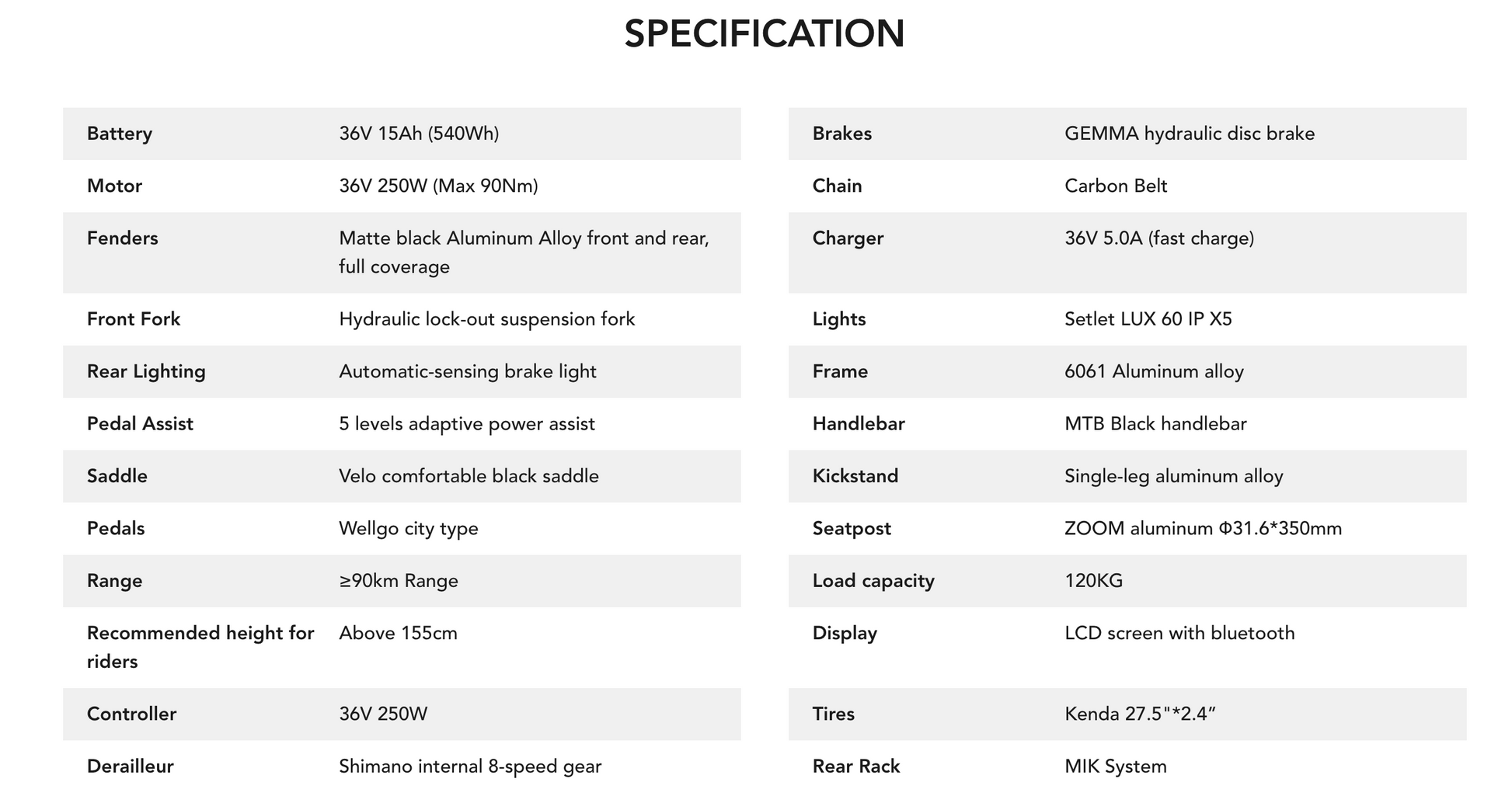 | Batteriekapazität | 36V 15Ah (540Wh) |